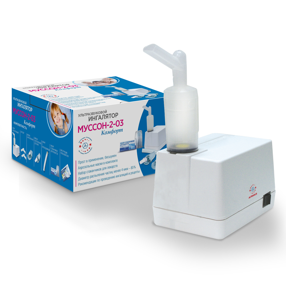 Ингалятор ультразвуковой «Муссон-2-03-Комфорт» подходит взрослым и детям с первых дней жизни, для лечения и профилактики органов дыхания.